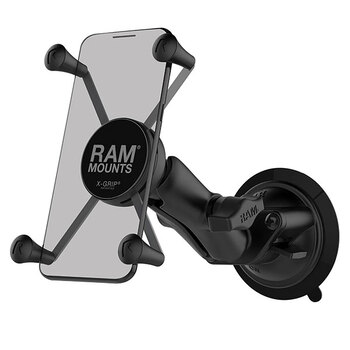 Consists of a 3.3" diameter suction cup twist lock base, standard length double socket arm and universal spring loaded X-Grip cradle for cell phones. The suction cup, twist lock base is designed to have a strong hold on glass and non-porous plastic surfaces. Small