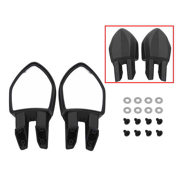 Included Items: (2) Black mirrors, (8) Philips truss head tapping screws, (8) Flat washers, Instructions